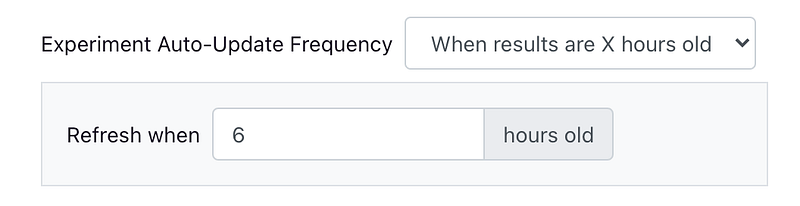 We now support adjusting the update frequency for experiment results. You can choose to refresh automatically based on the age of results, a fixed Cron schedule, or even turn off automatic updates entirely. This gives you complete control over how and when queries hit your data source.