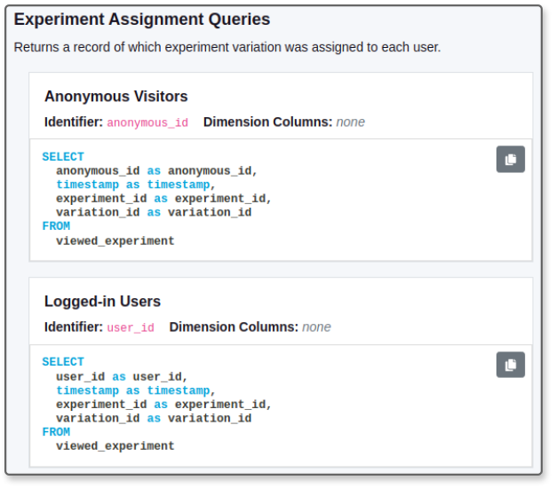 Now, GrowthBook lets you define multiple assignment queries for a single data source. When analyzing an experiment, you choose which assignment query to use.
