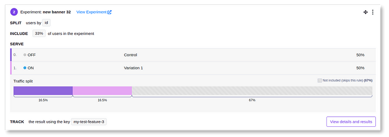 - Clear CTAs at the top of the page to start an experiment, ramp up traffic, and make a decision