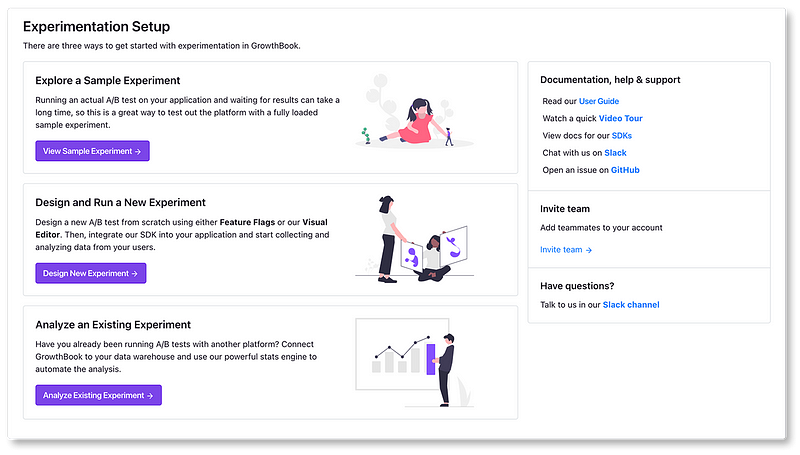 It’s now much quicker and easier to set up a new GrowthBook account from scratch. If you aren’t ready to connect GrowthBook to your application and data yet, there’s a new sample dataset built-in, including metrics, experiments, and feature flags (with an easy cleanup button when you’re done). And, once you’re ready to fully integrate GrowthBook, we streamlined the database connection process and SDK integration.
