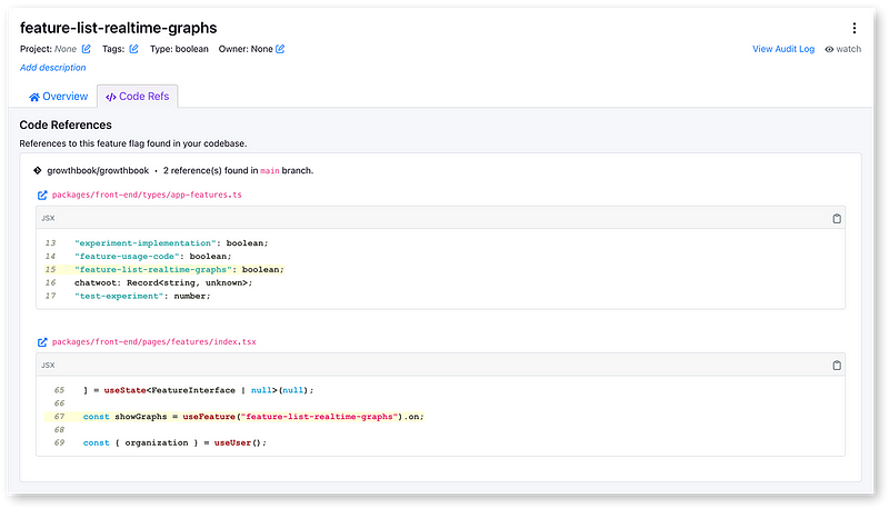 Back in GrowthBook 2.6, we added stale feature flag detection. Now with Code Refs, we’re making that more actionable by showing you exactly where a feature is being used in your application’s code base.