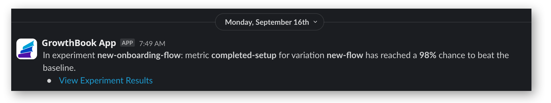 We completed a big overhaul of our webhook notification system which will allow us to rapidly add support for new events and filtering capabilities going forward. First up is one of our most requested features—the ability to alert when a goal metric in an experiment reaches significance. You can now configure alerts for this event and send them to Slack, Discord, or a custom endpoint.